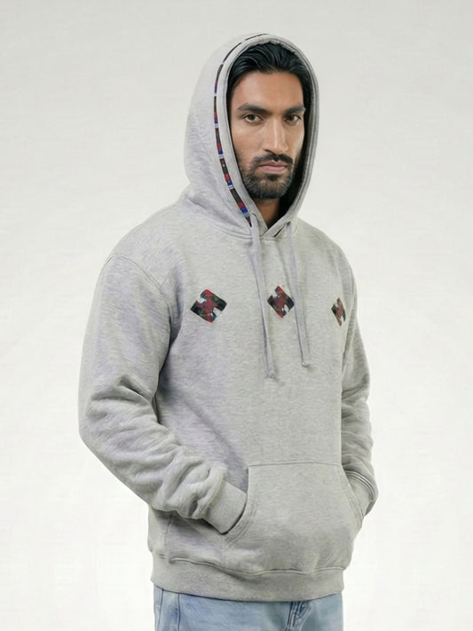 Handmade Folk Embroidered Grey Hoodie