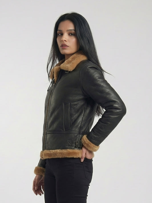 Women's Shearling Hooded Bomber Jacket