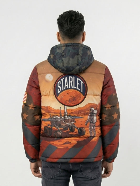 Men’s Astronaut Print Hooded Puffer Jacket