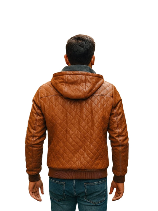 Tan Brown Bomber Style Quilted Leather Jacket