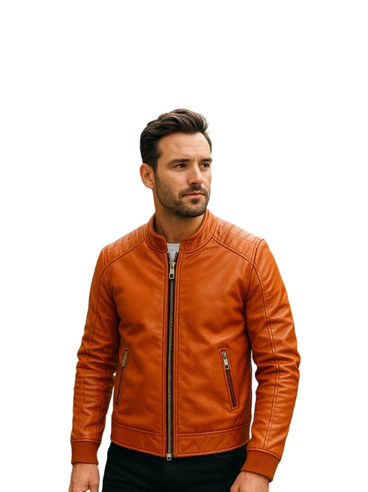 Tan Biker Brown Leather Jacket