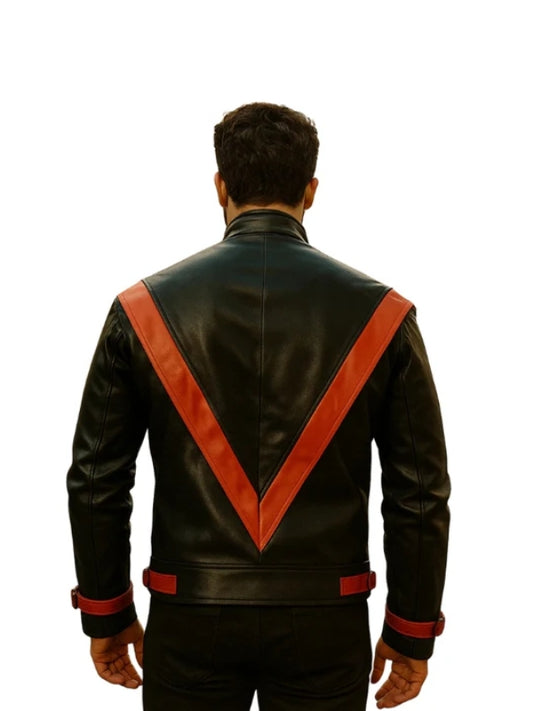 Red Stripe Black Leather Jacket