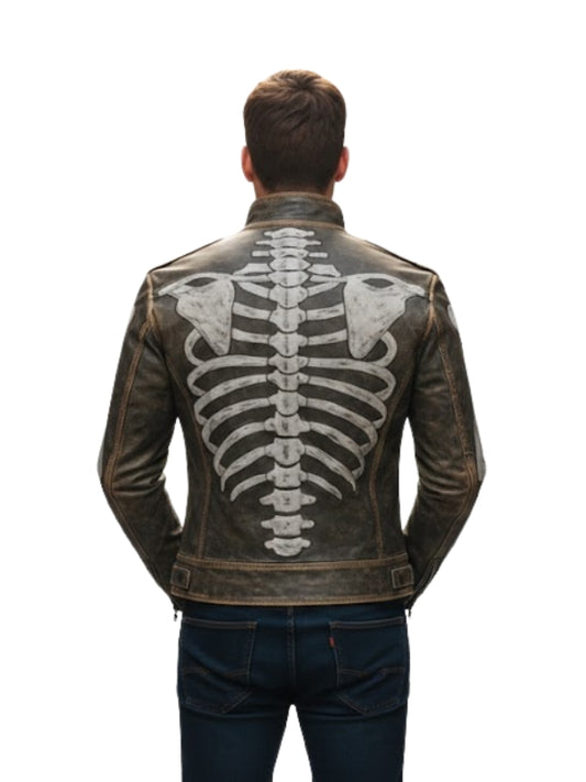 Skeleton Bone Design Vintage Patina Punk Leather Jacket