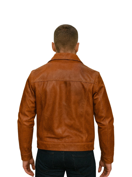 Tan Brown Trucker Style Genuine Leather Jacket