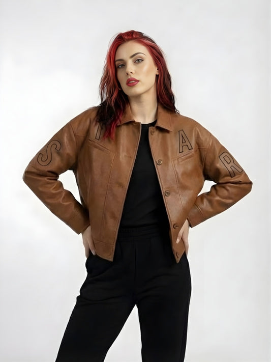 Women's Brown Leather Biker Jacket