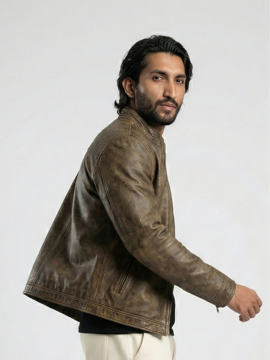 Distressed Brown Leather Biker Jacket