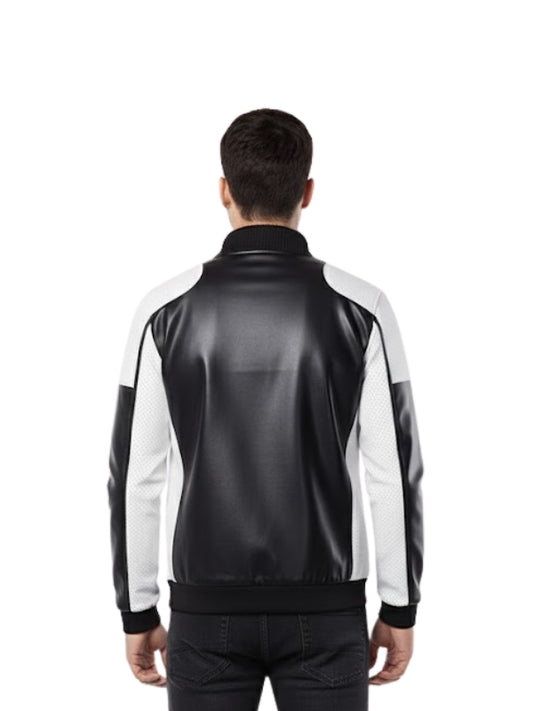 Men's Black And White Motorcycle Jacket