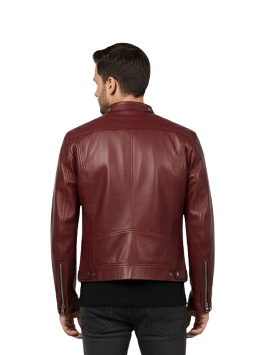 Men's Red Café Racer Biker Jacket