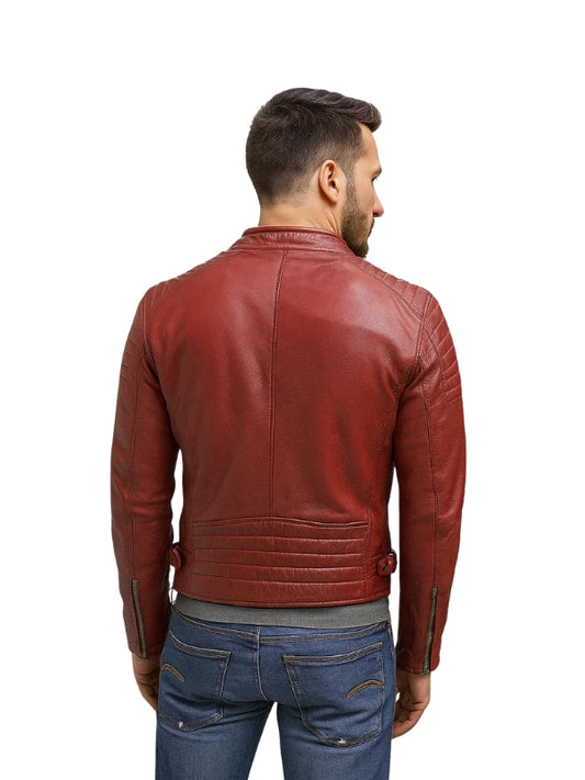 Men's Red Waxed Café Racer Biker Jacket