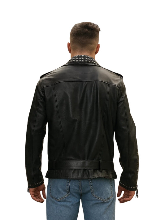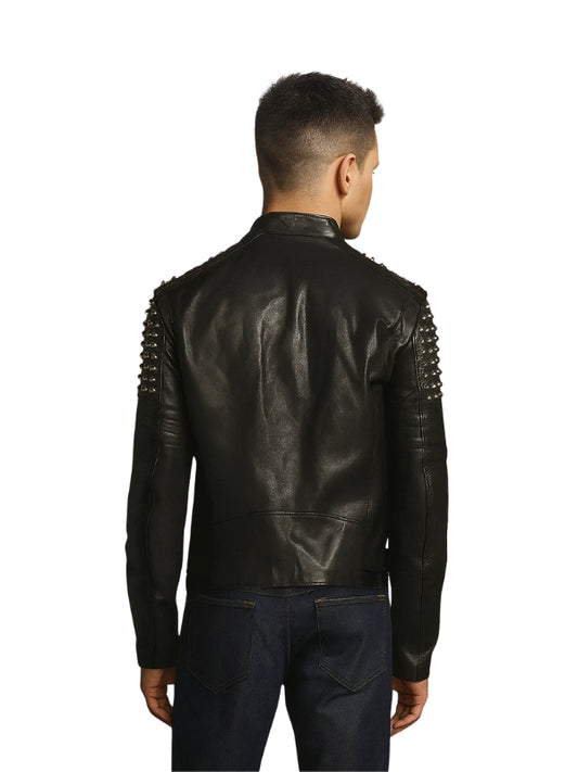 Maestro Black Studded Biker Leather Jacket