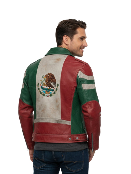 Men's Mexican Flag Leather Biker Jacket