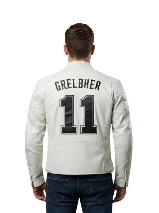 Men's White Leather Biker Jacket