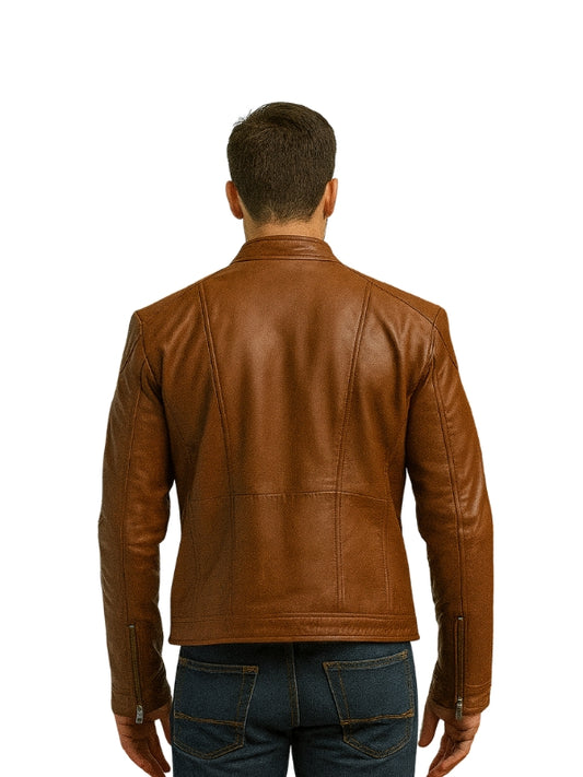 Tan Biker Brown Leather Jacket