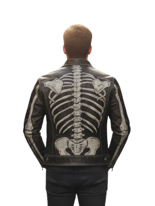 Skeleton Design Vintage Punk Leather Biker Jacket