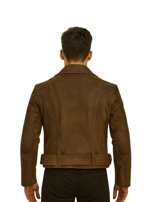 Men's Express Brown Suede Biker Leather Jacket