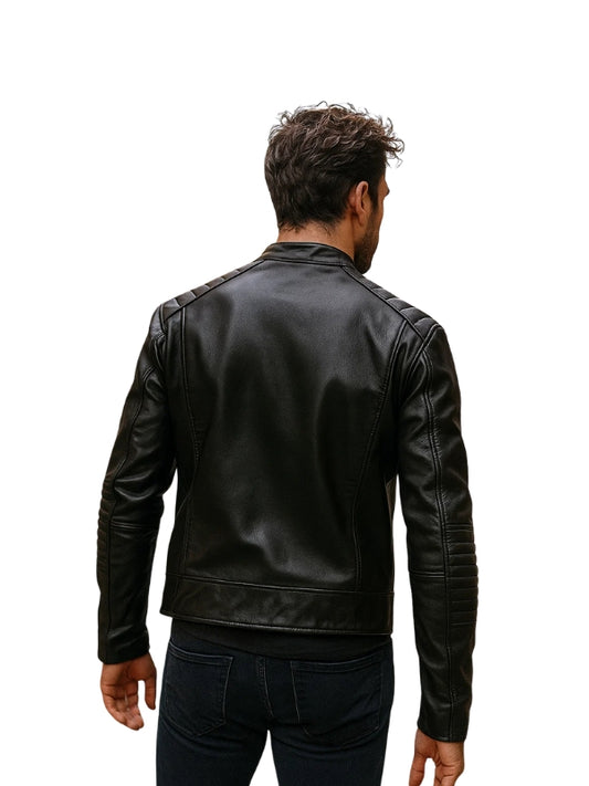 Black Quilted Biker Leather Jacket