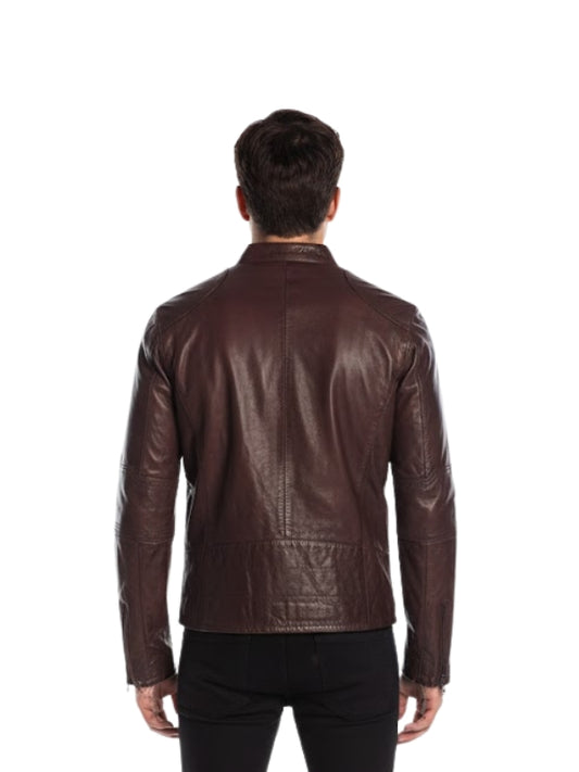 Men's Maroon Café Racer Biker Jacket