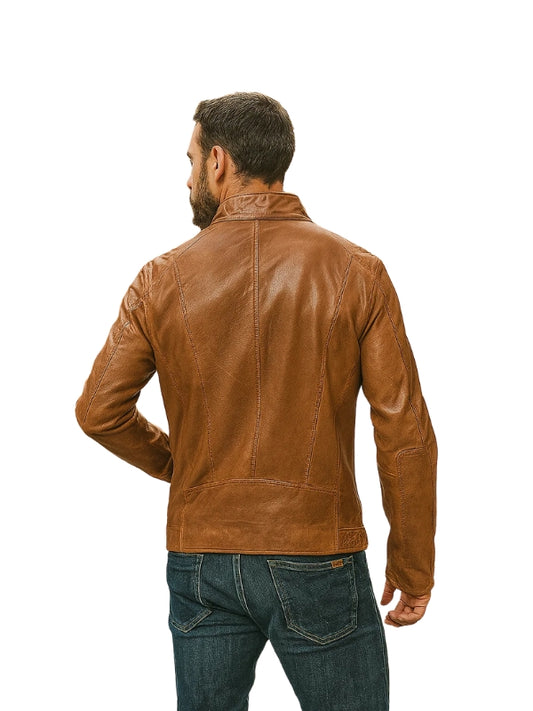 Noble Tan Leather Biker Jacket