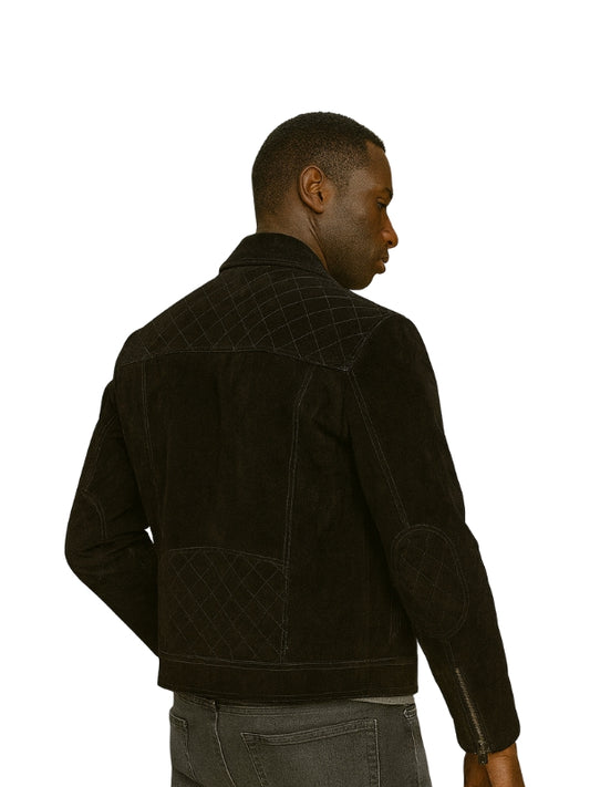 Mens Express Suede Quilted Black Leather Jacket