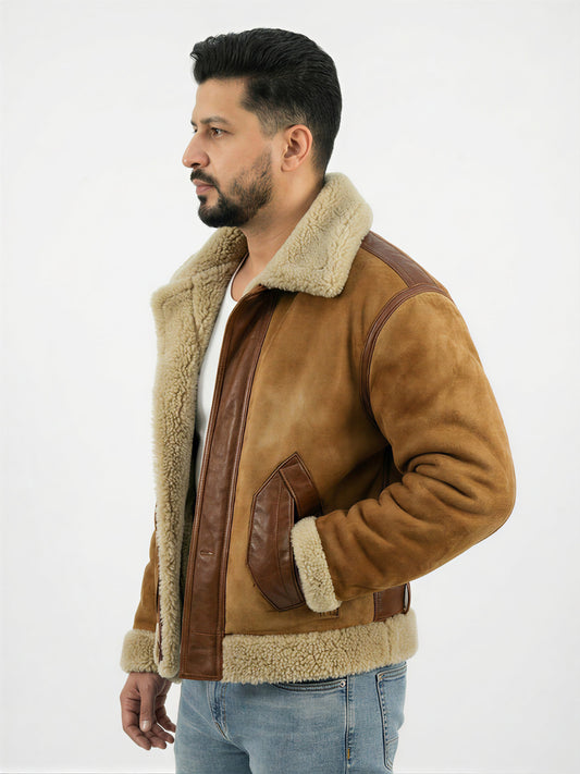 Men's Brown Biege B3 Sherpa Aviator Bomber Jacket