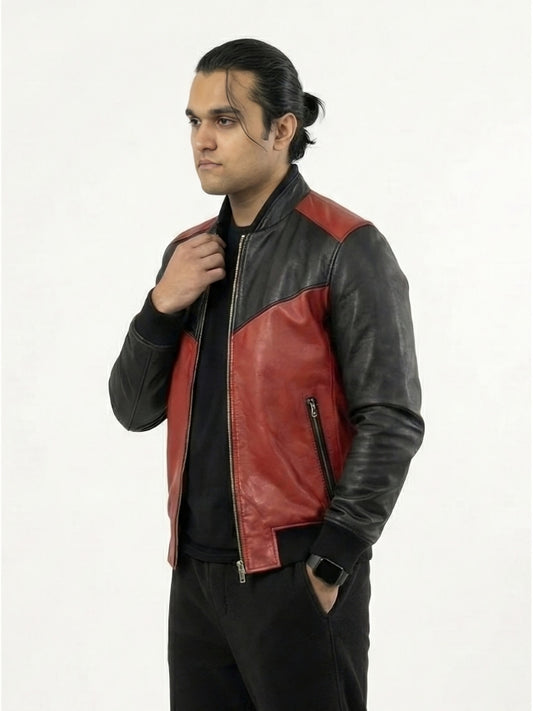 Men’s Two Tone Red and Black Bomber Jacket