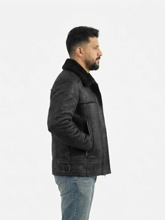 Men’s Black Bomber Shearling Leather Jacket