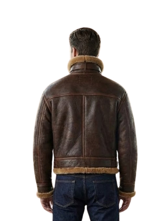 Men's Brown Aviator B3 Shearling Sheepskin Bomber Leather Jacket