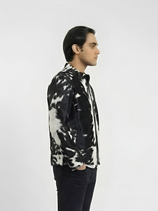 Men’s Cow Print Hair-On Leather Jacket
