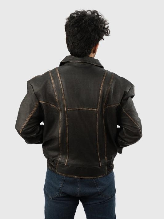 Men’s Real Leather Distressed Biker Jacket – Quilted Style