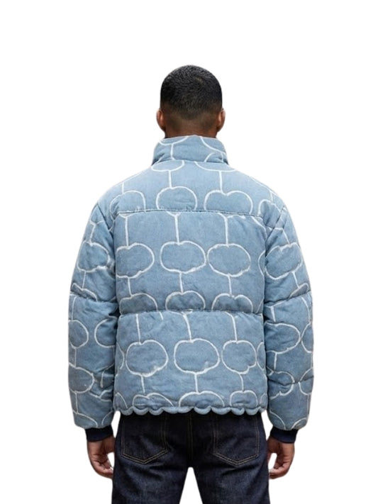 Light Blue Graphic Patterned Puffer Jacket