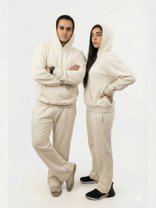 Unisex Casual Pullover Off-White Fleece Tracksuit