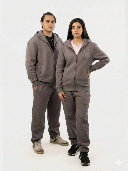 Unisex Casual Zip-Up Grey Fleece Tracksuit