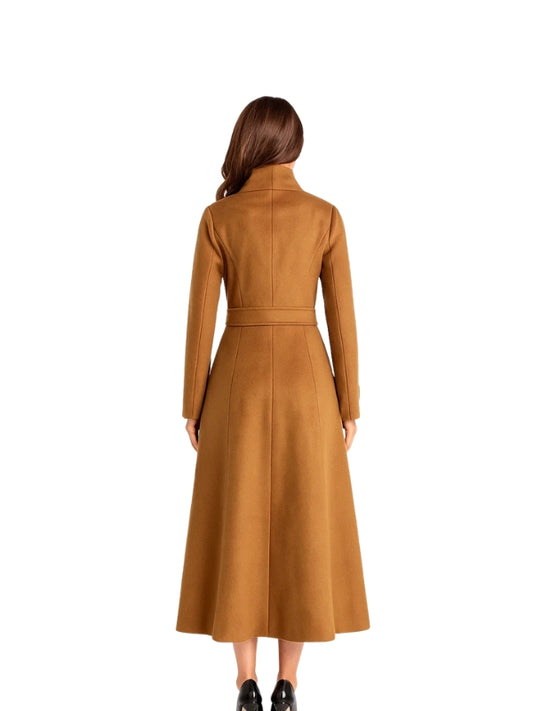 Women's Brown Handmade Long Sleeves Real Wool Belted Trench Coat