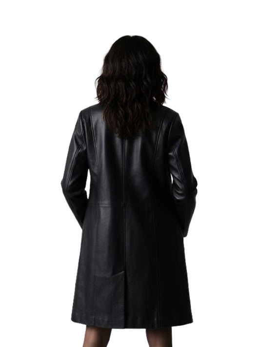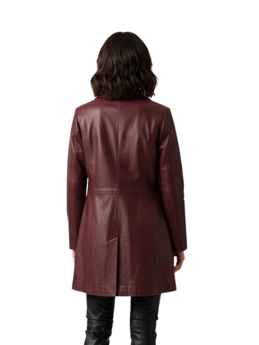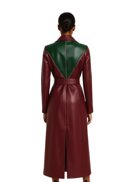 Women's Black & Maroon Leather Trench Coat