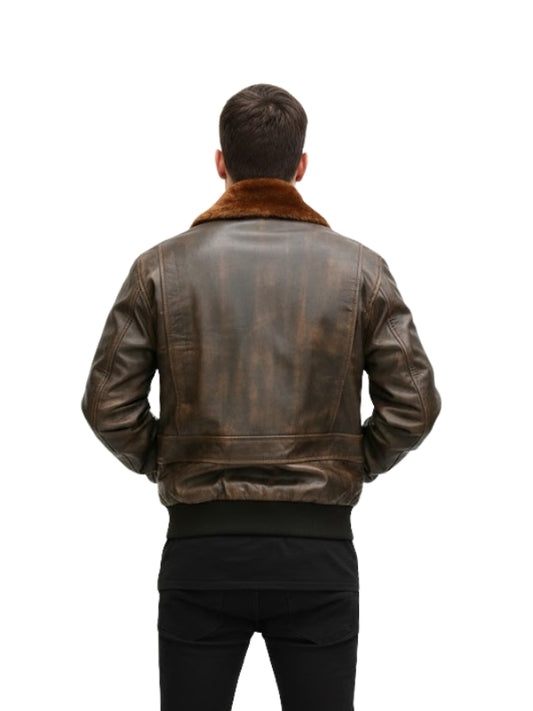 Men's G1 Aviator Distressed A-2 Raf Fur Brown Bomber Jacket