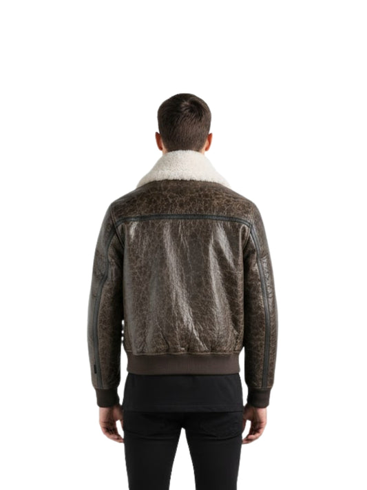 Men's Aviator Sheepskin Shearling B3 Bomber Brown Leather Jacket