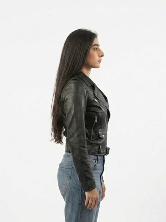 Women's Distressed Biker Goat Jacket