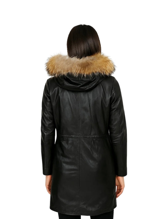 Women's Handmade Quilted Winter Puffer Coat With Fur Hood