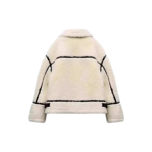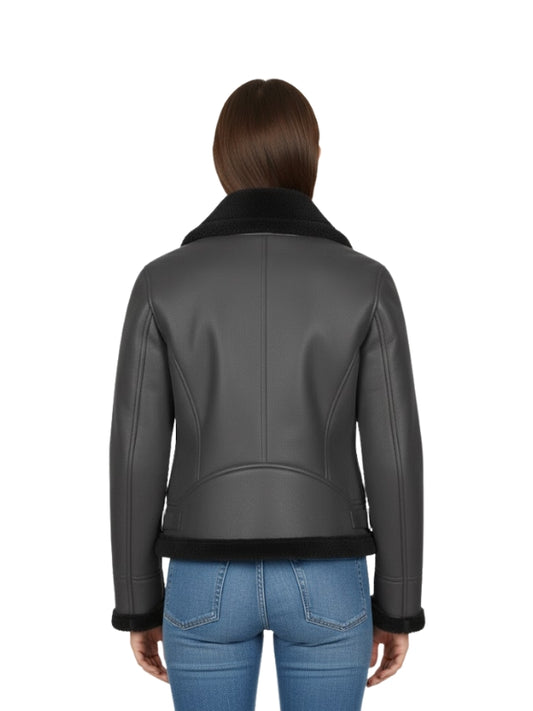 Women's Real Sheepskin Faux Fur Long Sleeve Leather Jacket