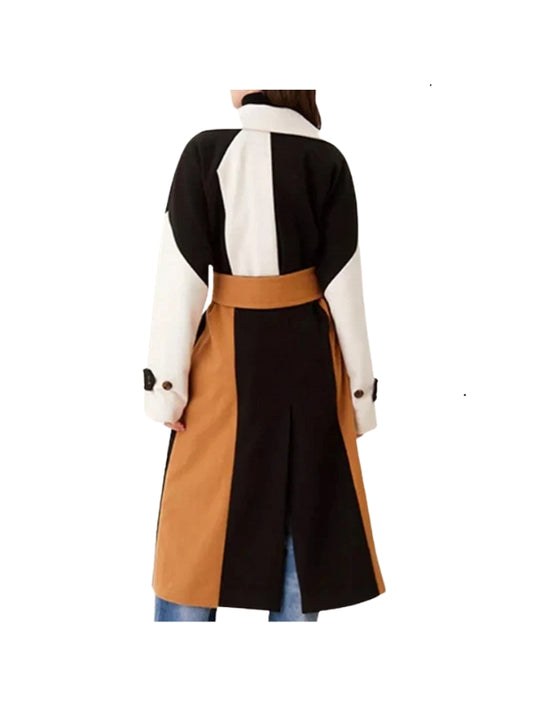 Women's Handmade Tri-color Real Wool Long Sleeves Trench Coat