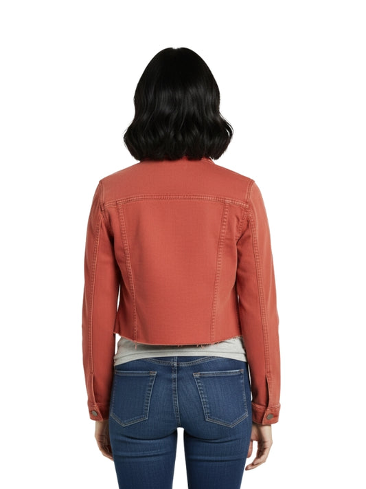 Women's Handmade Viscose Lining Long Sleeves Pink Denim Jacket