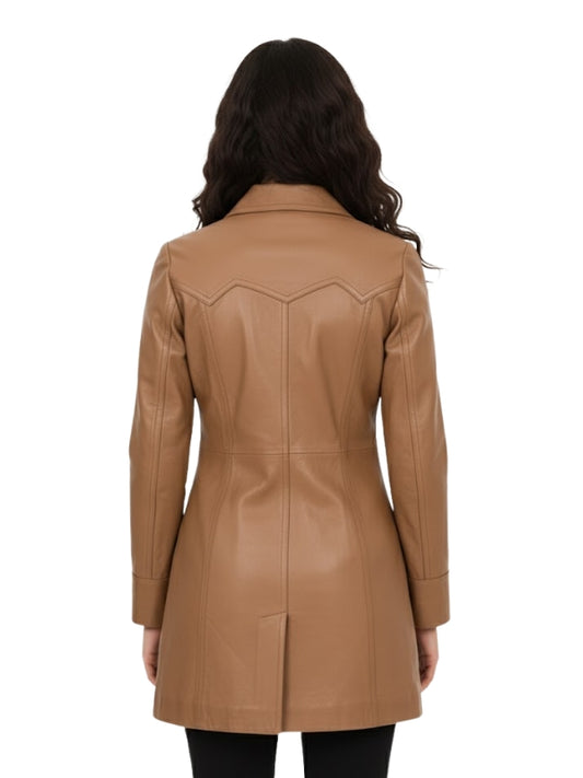 Women's Handmade Long Sleeves Real Wool Brown Trench Coat