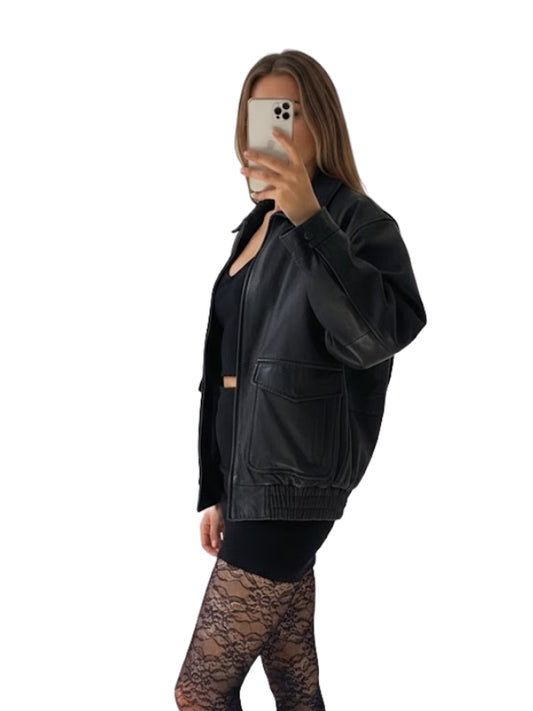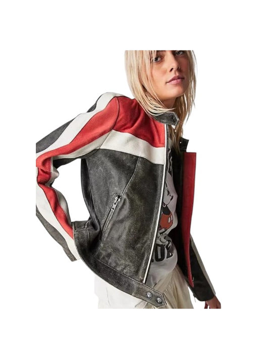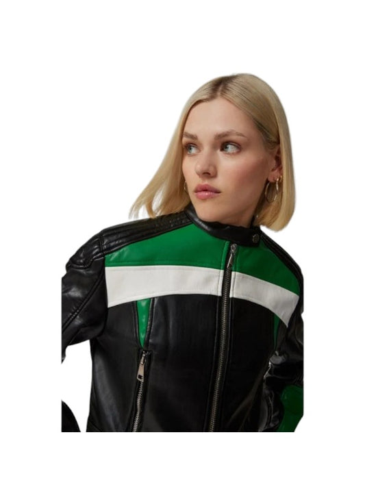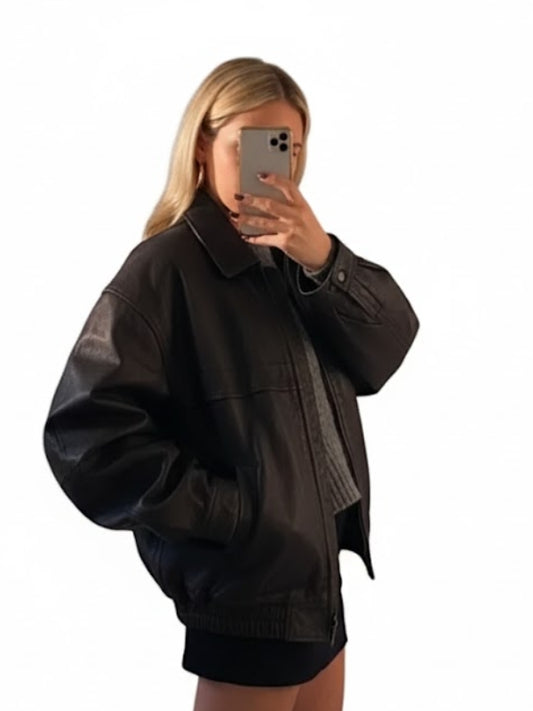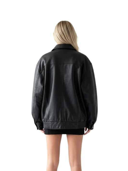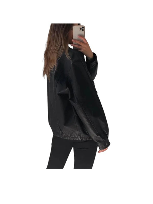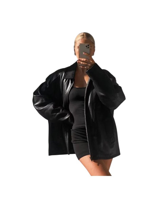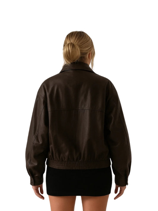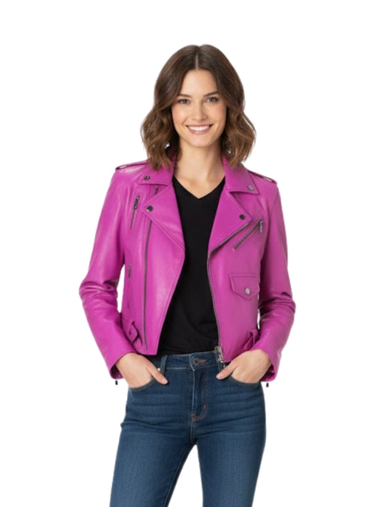 Women's Oversize 80's Orange Biker Cropped Jacket