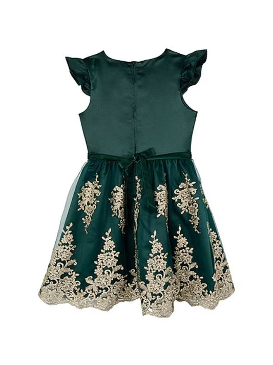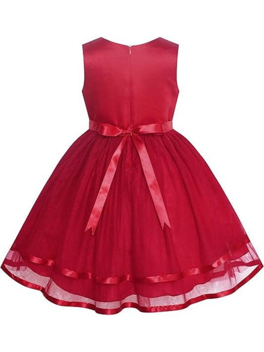 Big Girls Short Sleeve Satin Mesh Skirt Dress