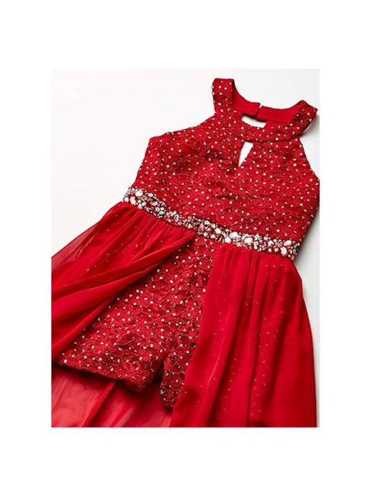 Girls High Neck Romper Sleevless Wedding Party Dress