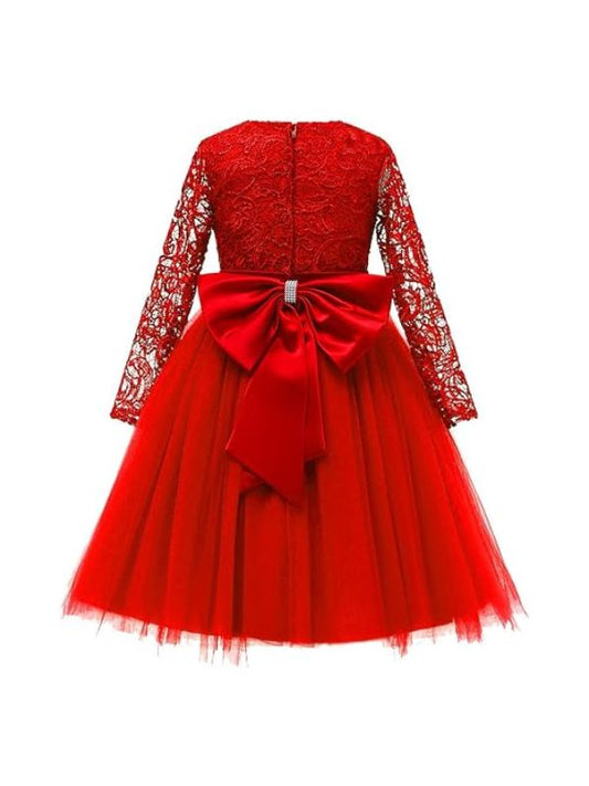 Girls Long Sleeves Top Tulle Wedding Party Dress