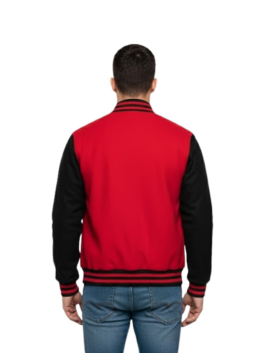 Men's Casual Slim Fit Wool Red & Black Varsity Bomber Jacket