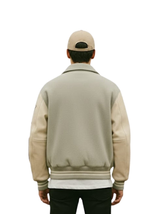 Men's Real Wool Long Sleeves Varsity Bomber Leather Jacket