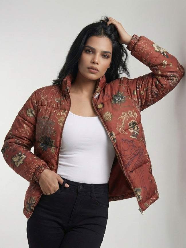 Abstract Floral Pattern Puffer Jacket