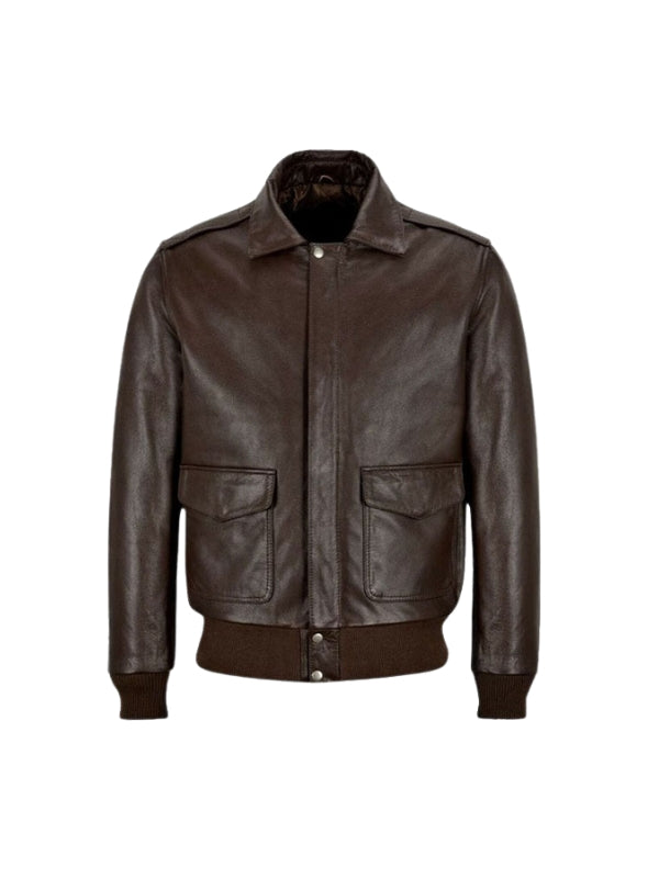 Men's A2 Aviator Pilot Long Sleeves Brown Bomber Leather Jacket